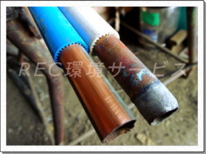 | 素材 | 被覆銅管(下)(空調用被覆銅管、皮がプラスチックで厚く固い物、アルミテープ付き) |